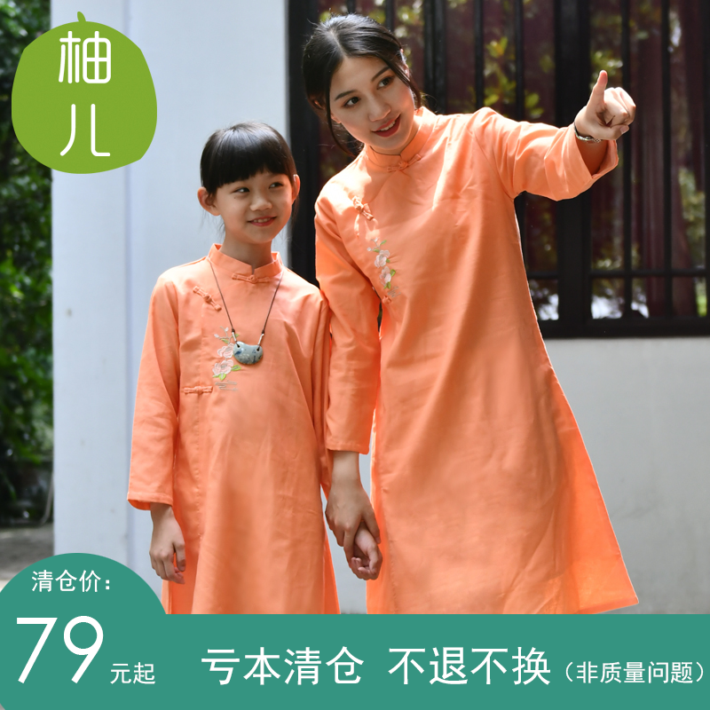 杏儿|柚儿童装亲子旗袍女童茶服棉麻中国风文艺连衣裙禅意袍子春