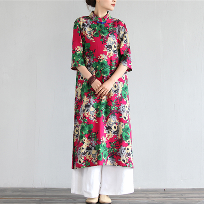 棉麻连衣裙女春秋原创中国民族风大码宽松中式文艺复古长裙袍子夏