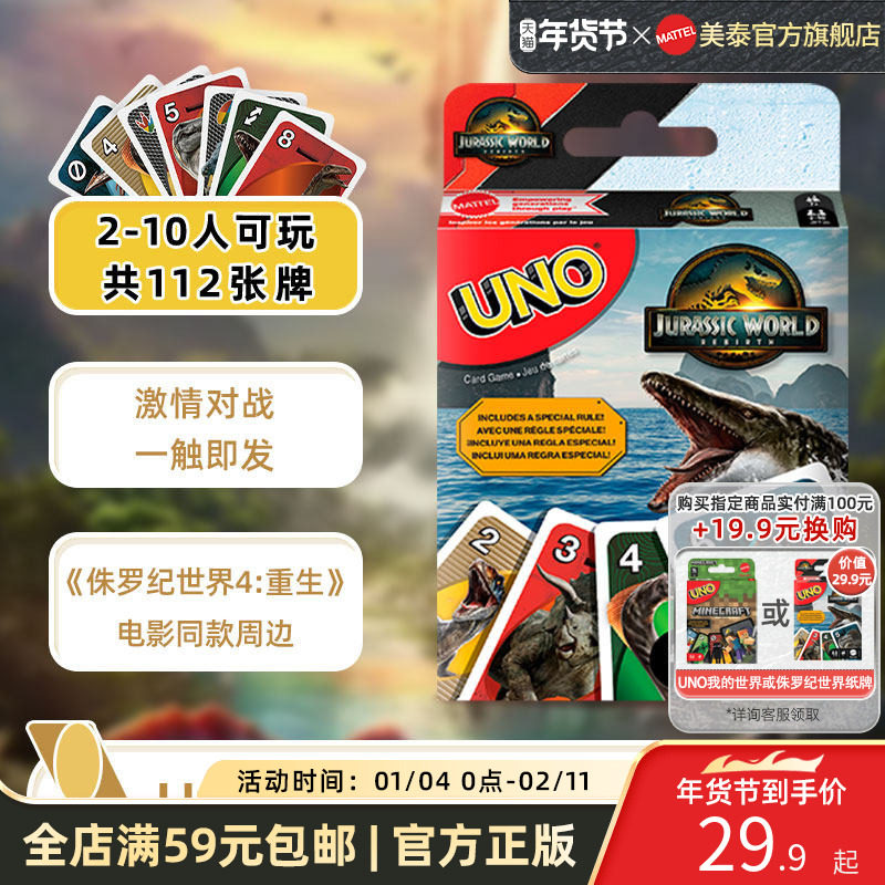 美泰侏罗纪世界4电影同款周边UNO纸牌聚会游戏互动优诺卡牌桌游