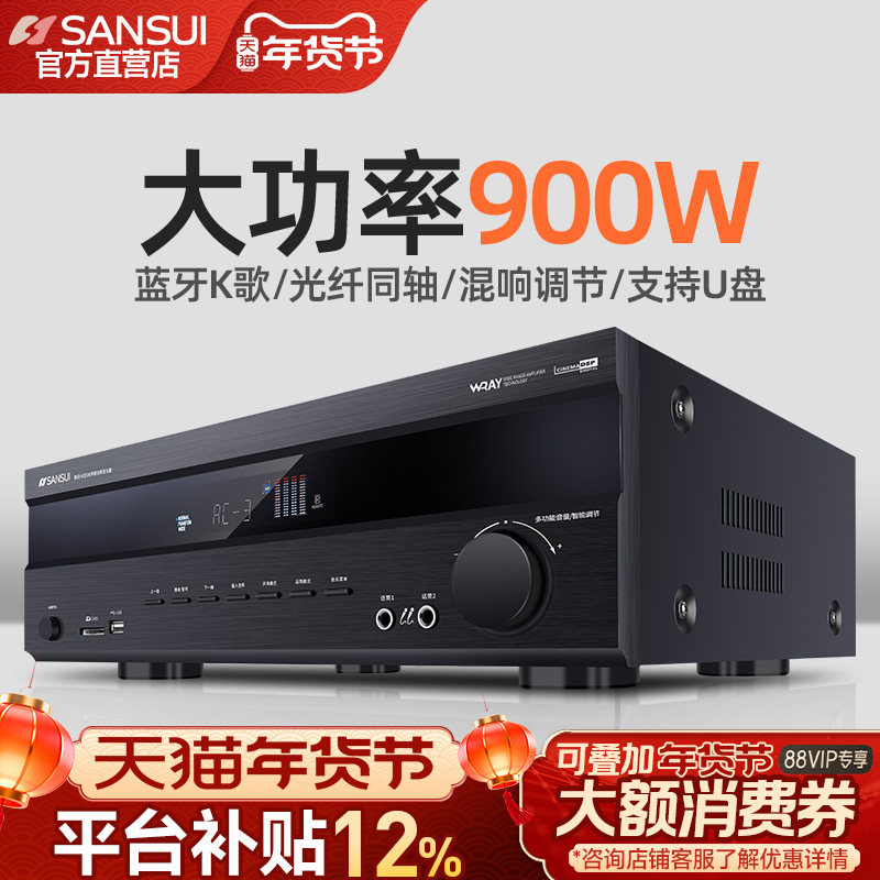 SUNBUCK山宇家用功放机 卡拉OK功放环牛大功率带插卡摇控蓝牙功放