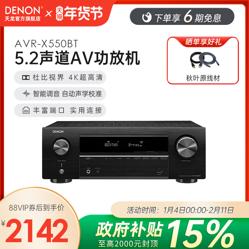 Denon天龙功放机AVR-X550家用功放大功率音响蓝牙5.2声道【天猫仓