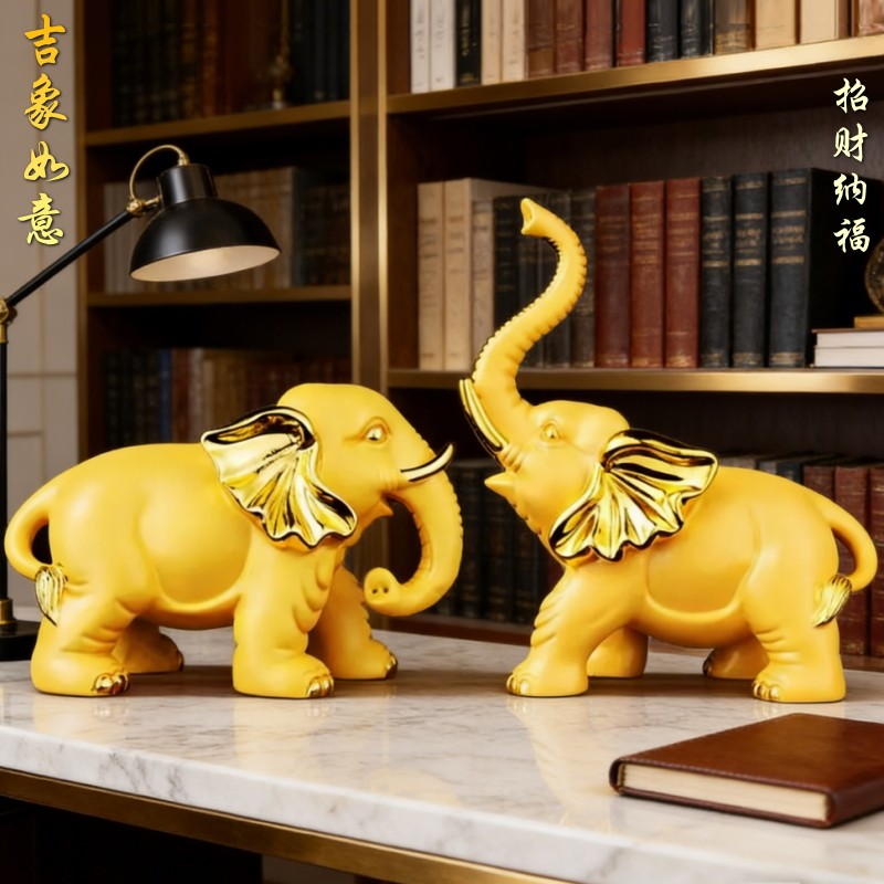 招财大象摆件 风水镇宅象一对家居客厅吉象装饰 乔迁新居开业礼品