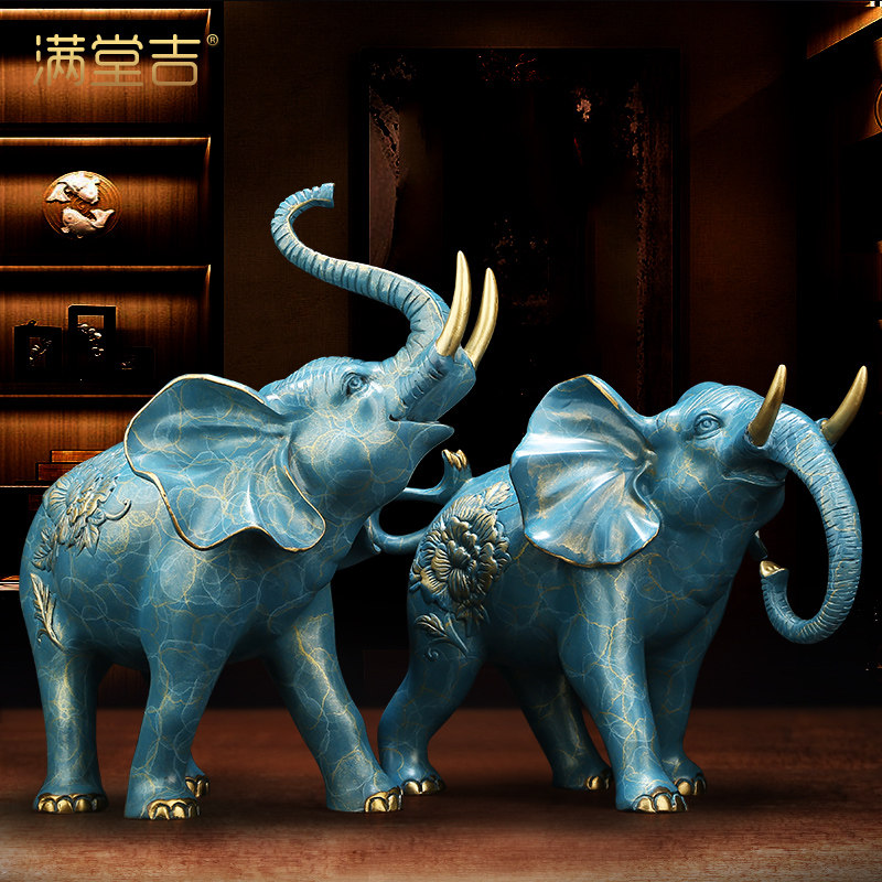 招财大象摆件一对家居装饰品欧式客厅玄关酒柜吉祥乔迁结婚送礼物