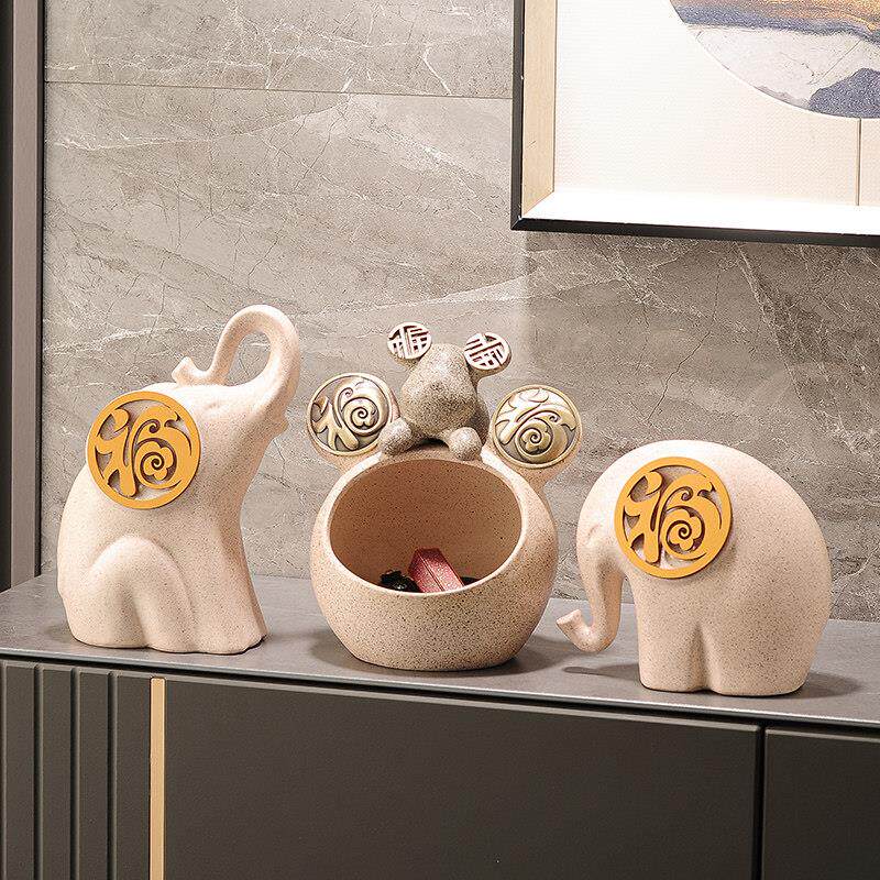 创意招财大象摆件现代轻奢客厅电视柜酒柜家居装饰品乔迁新居礼物