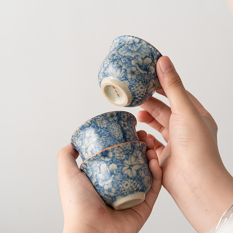 JOJO'S L. PD.紫泉涧.复古青花茶杯主人杯陶瓷功夫茶具陶泥| 热袋
