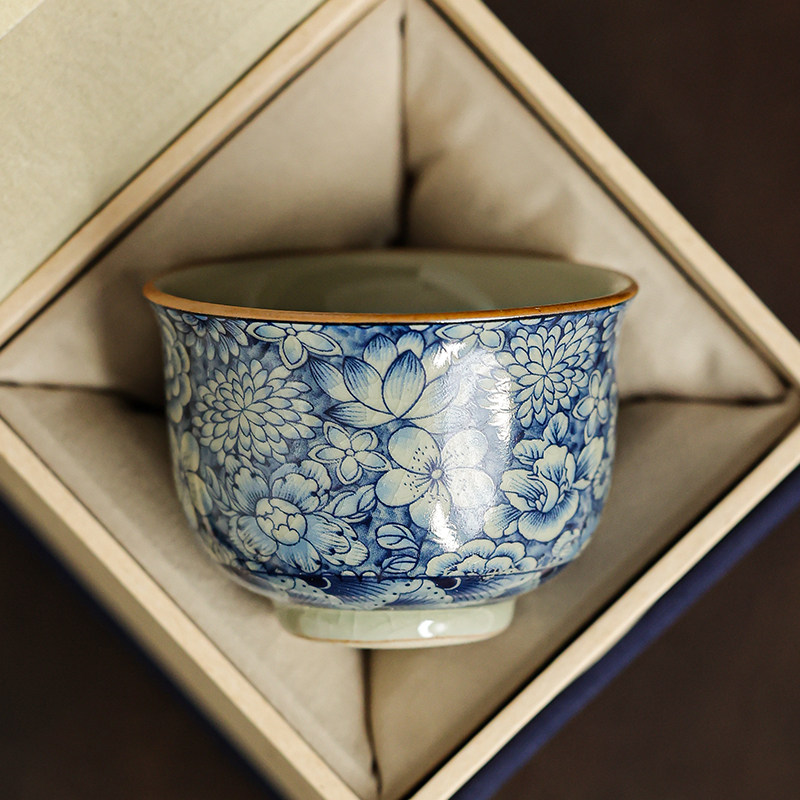 景德镇官方陶瓷柴窑青花茶杯主人杯品杯泡茶专用家用精致送礼精选