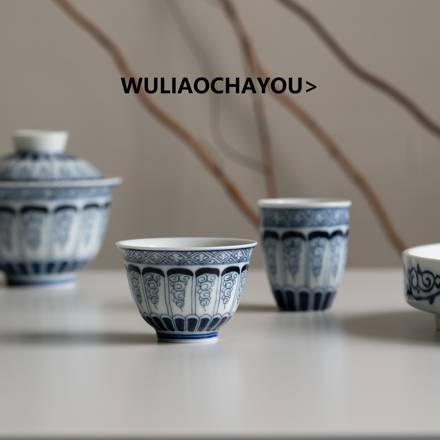 缠枝莲|潮州老式青花茶杯斗彩釉下彩品茗杯陶瓷工夫茶反口杯复古