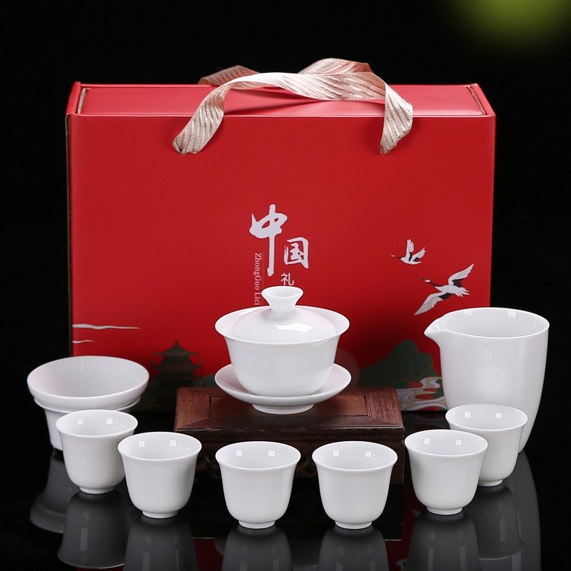 功夫茶具套装中国风家用陶瓷泡茶碗简约青花茶杯白瓷商务礼品全套