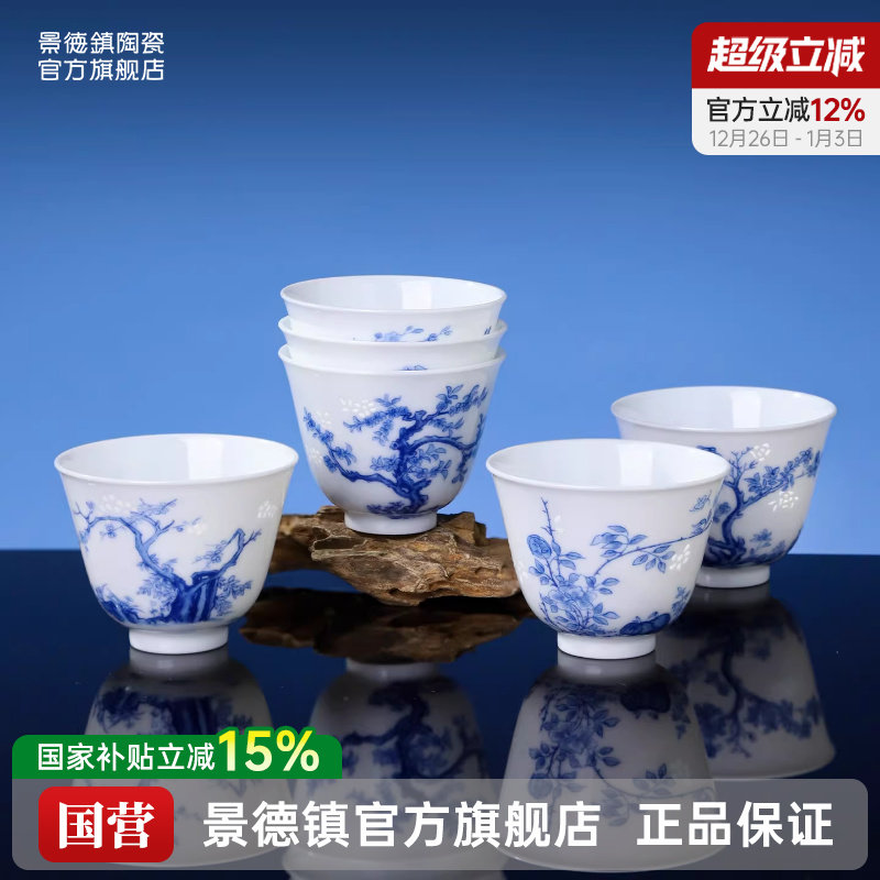 景德镇官方陶瓷釉中彩茶具套装家用中式青花茶杯主人杯品茗闻香杯