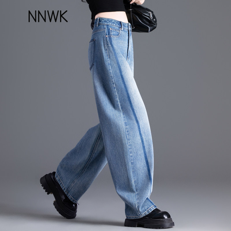 清仓蓝色弯刀牛仔裤女2025新款春秋季慵懒风版型超好看裤子哈伦裤