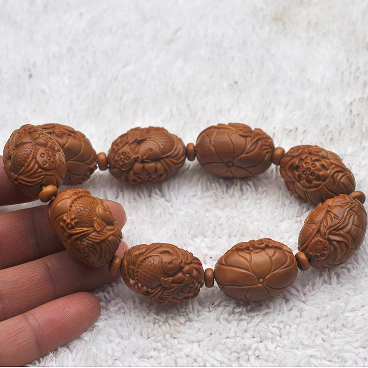 橄榄核雕手串橄榄胡手串男士年年有鱼连年有余年年有余 九鲤戏莲