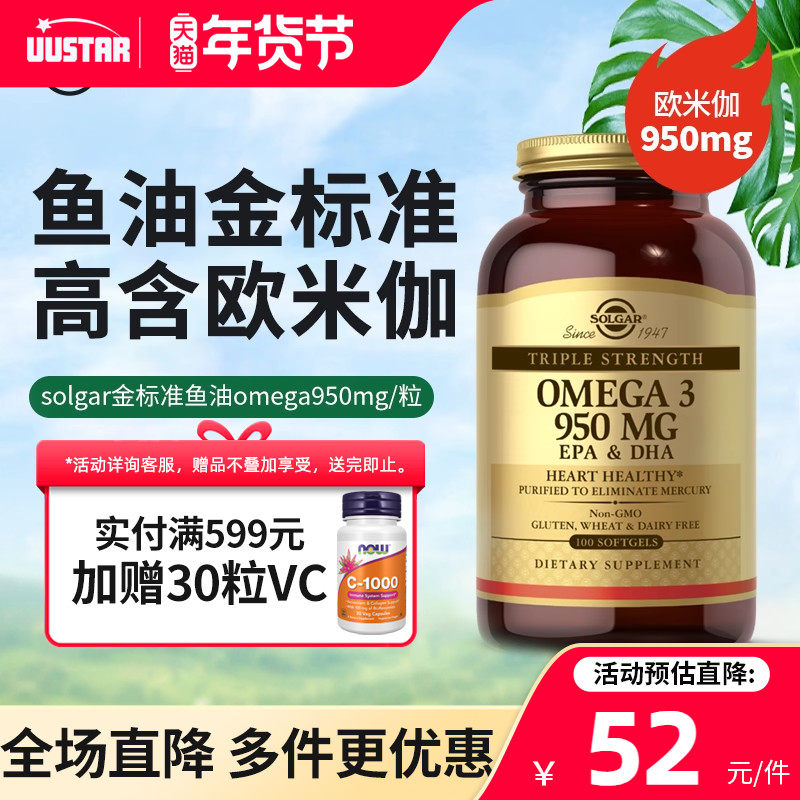 solgar美国进口深海鱼油欧米茄omega3软胶囊高浓度纯度中老年成人