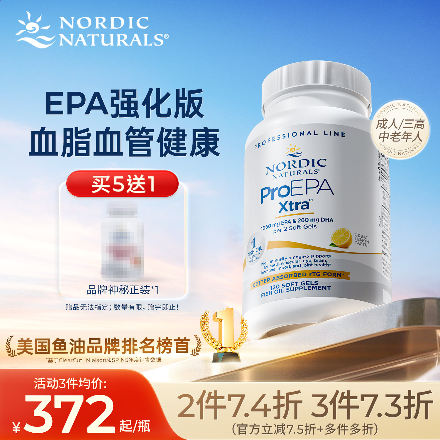 美国进口挪帝克成人EPAXtra深海加强版鱼油高浓度软胶囊中老年