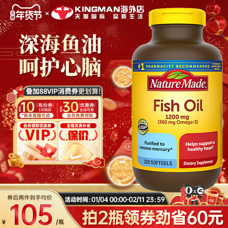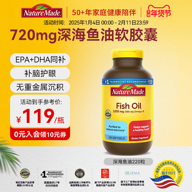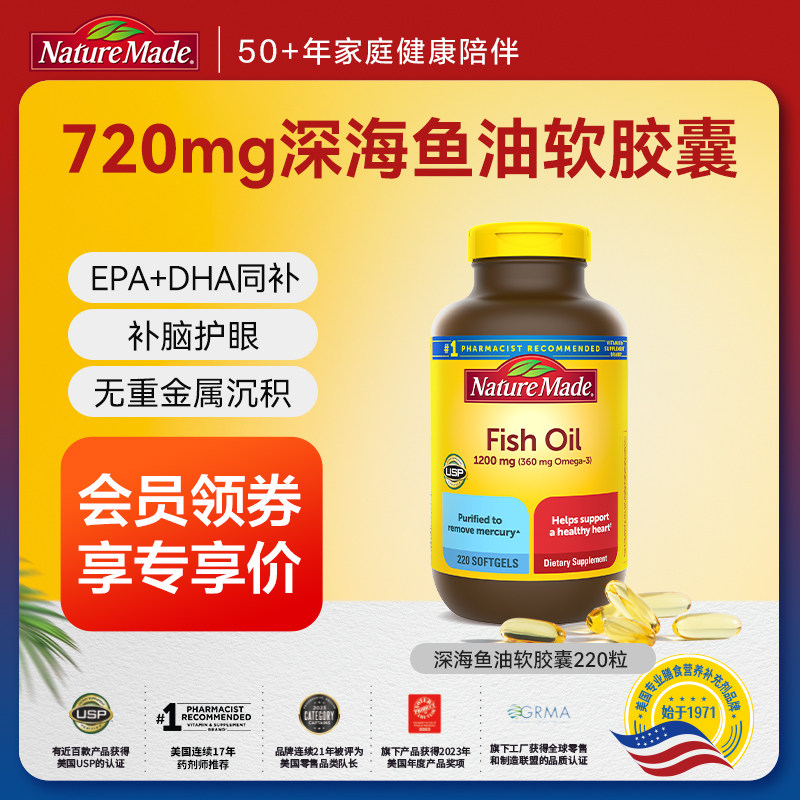 NatureMade天维美深海鱼鱼油220粒美国进口omega3软胶囊非 鱼肝油
