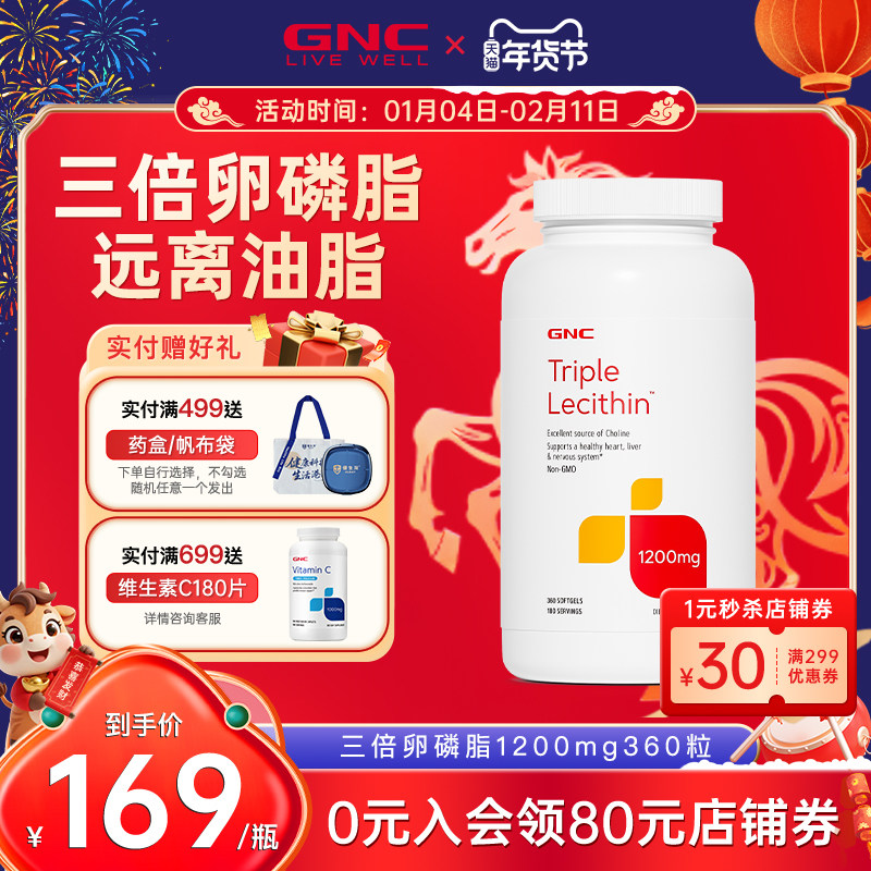 美国GNC健安喜大豆卵磷脂180粒进口三倍软磷脂软胶囊搭配深海鱼油