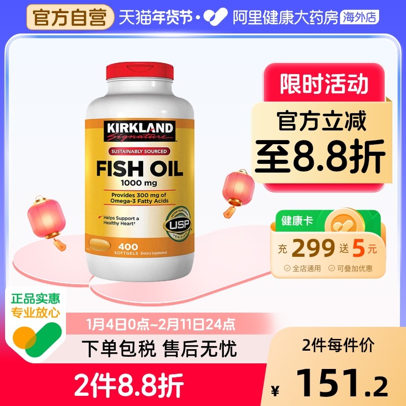 美国Kirkland柯克兰深海鱼油胶囊400粒COSTCO原装进口omega3正品