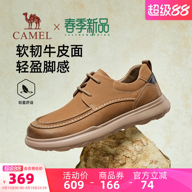 骆驼男鞋2026春季新款舒适软底真皮透气通勤商务系带复古休闲皮鞋