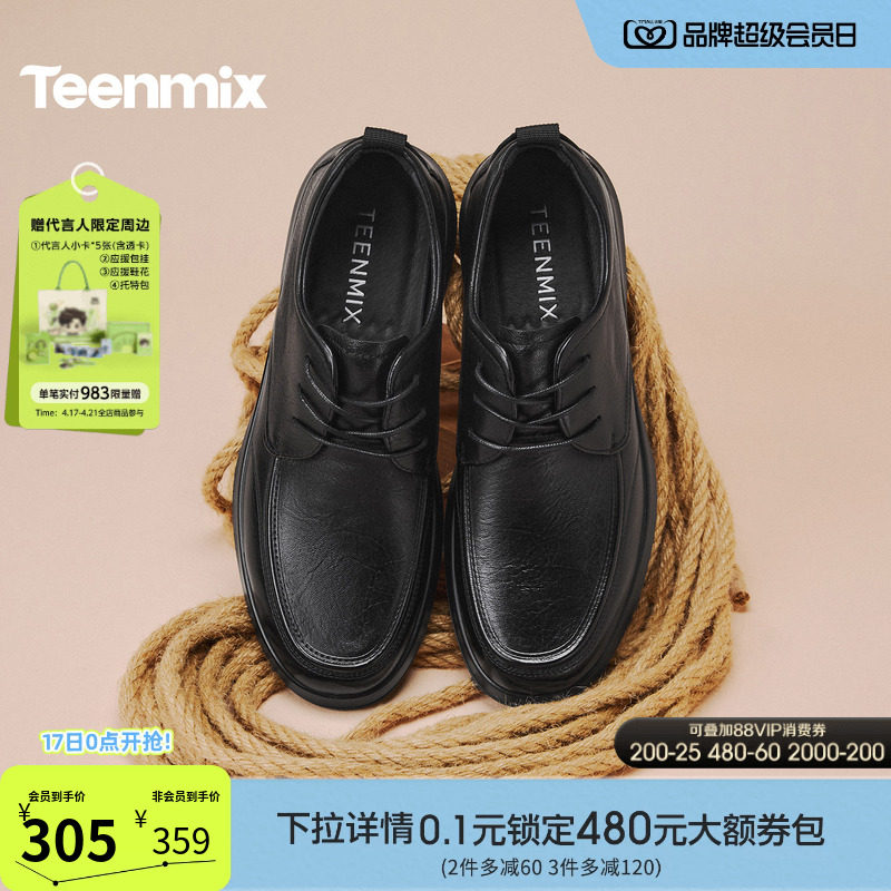 天美意牛皮休闲皮鞋男士软底商务休闲男鞋子免系带男2026春季新款