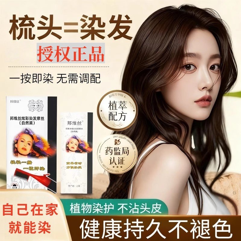 正品上海邦维丝一梳黑染发膏不沾头皮无刺激遮盖白发植物纯染发剂