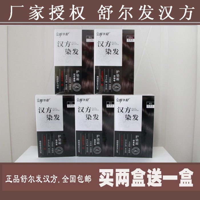 买二送一新年促销舒尔发汉方染发剂纯植物不伤发白发一梳黑染发膏