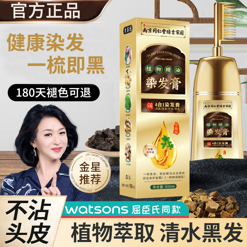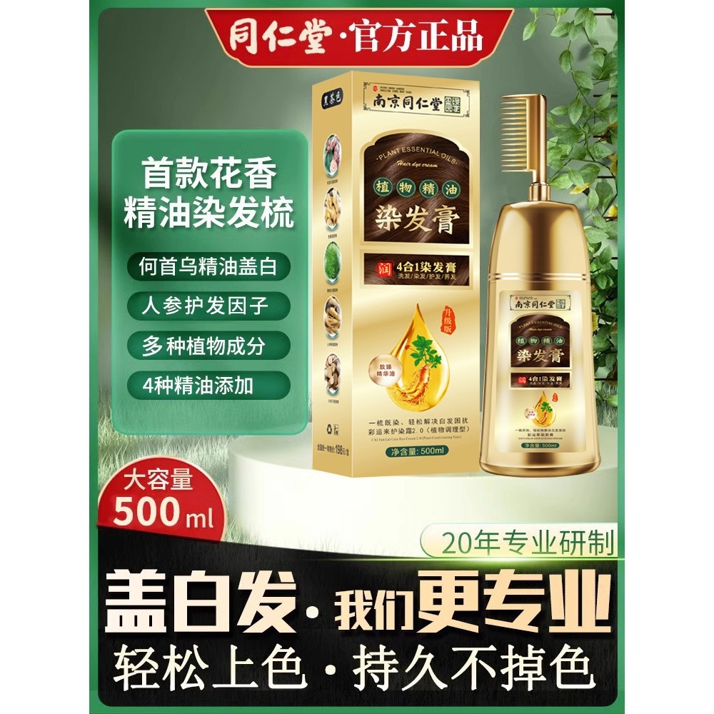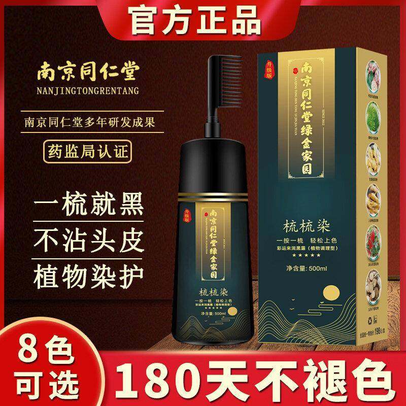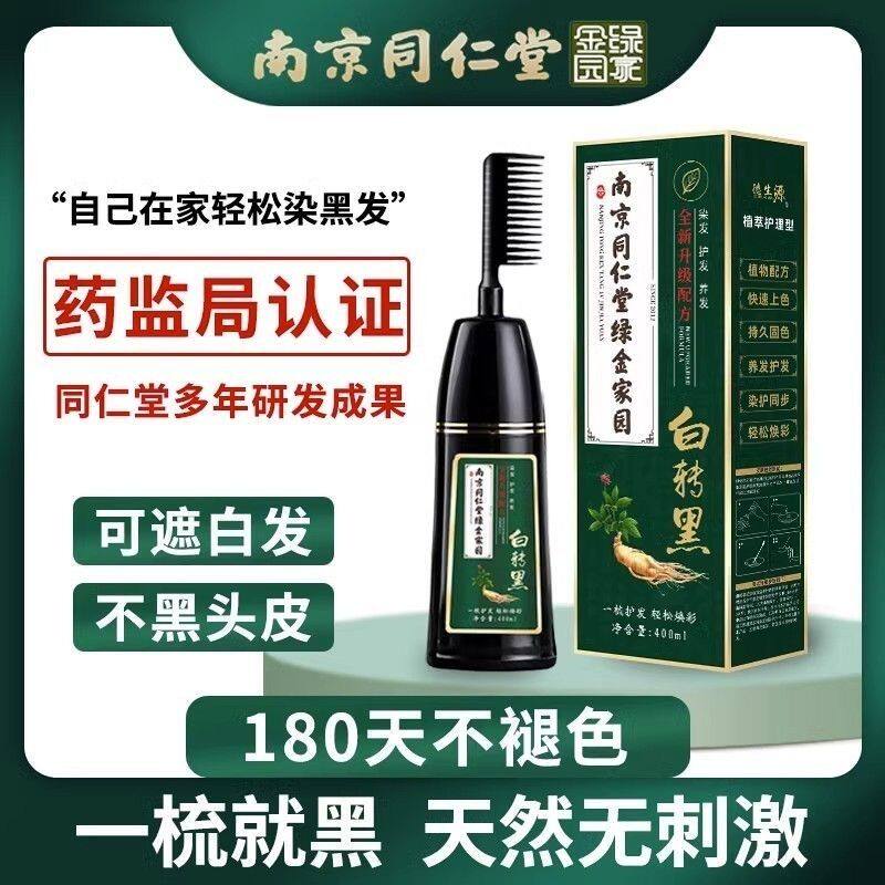 南京同仁堂一梳黑染发膏天然植物一梳黑染发剂自己染2025盖白发