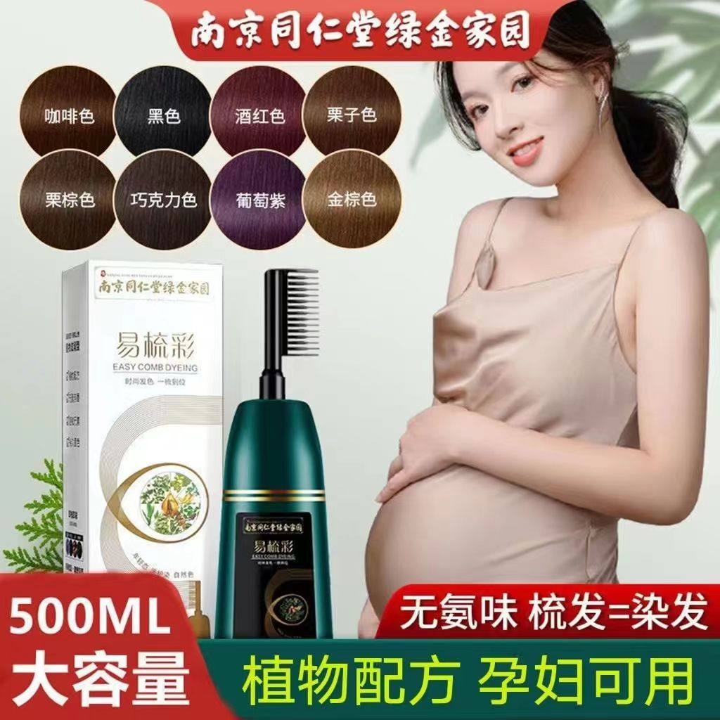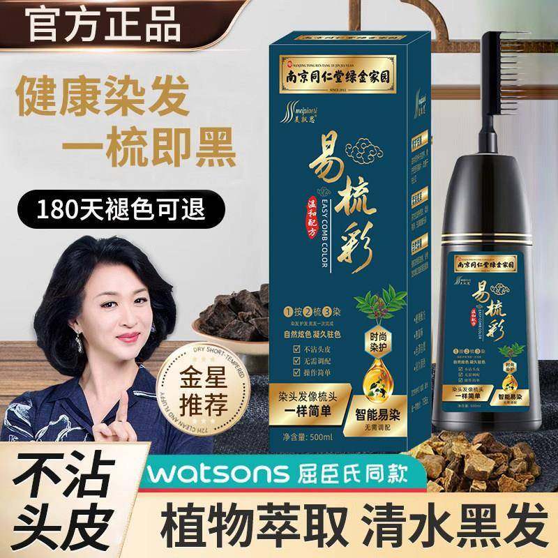 南京同仁堂天然植物染发剂染发一梳彩自己在家一梳黑染发膏遮白发