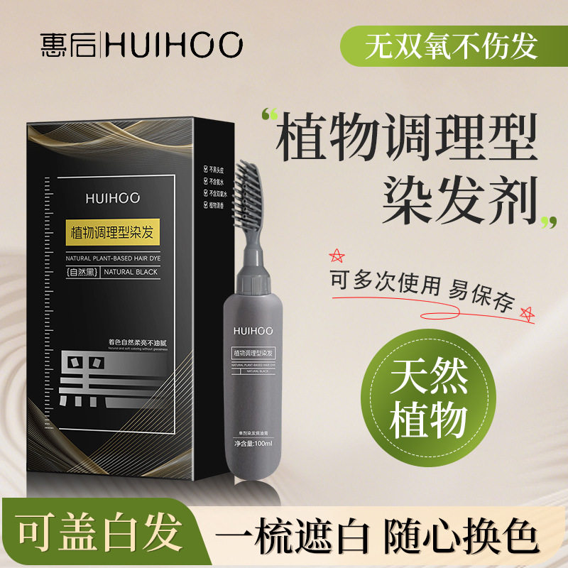 利威丝一梳黑染发剂植物纯正品天然遮白女染发膏男士专用染发梳子