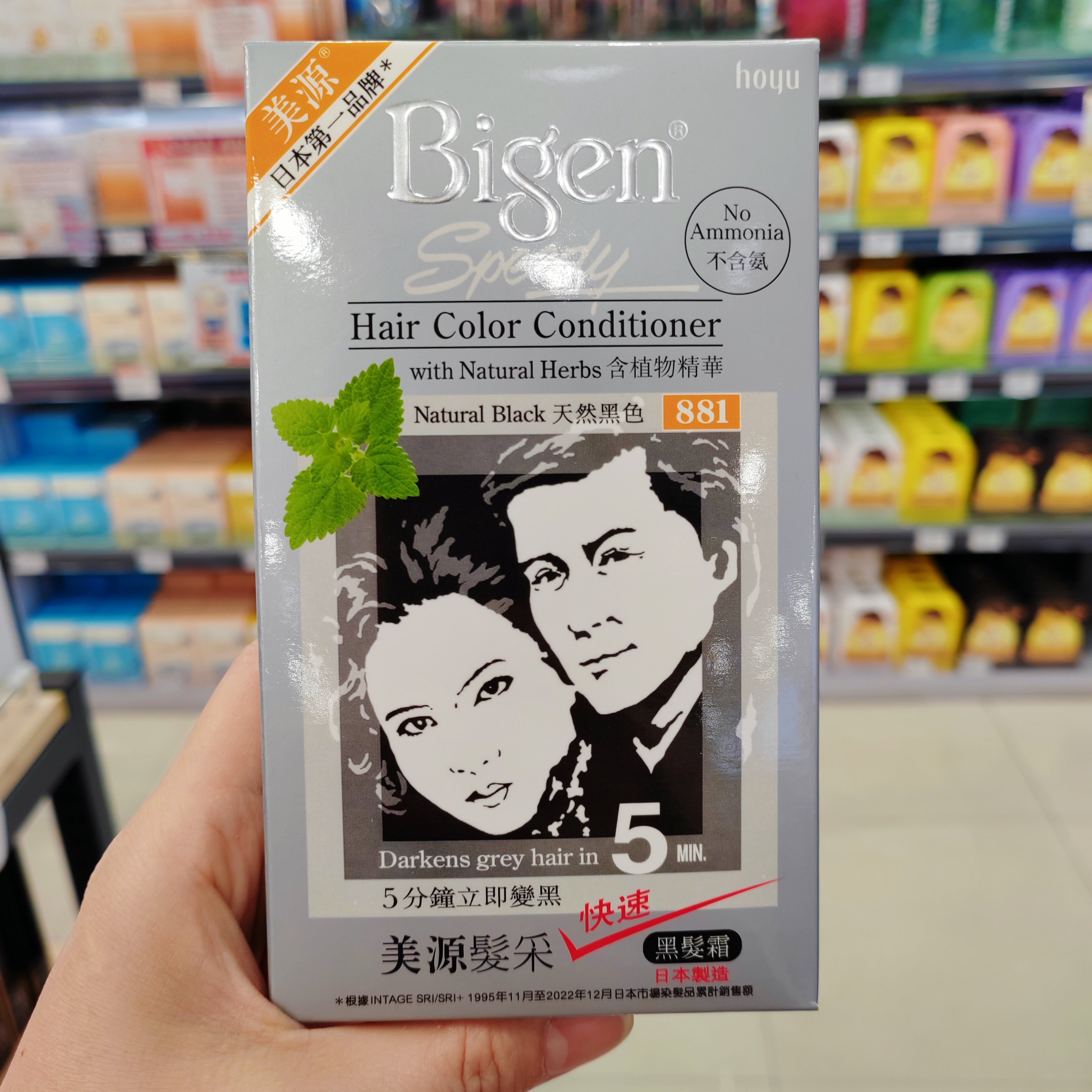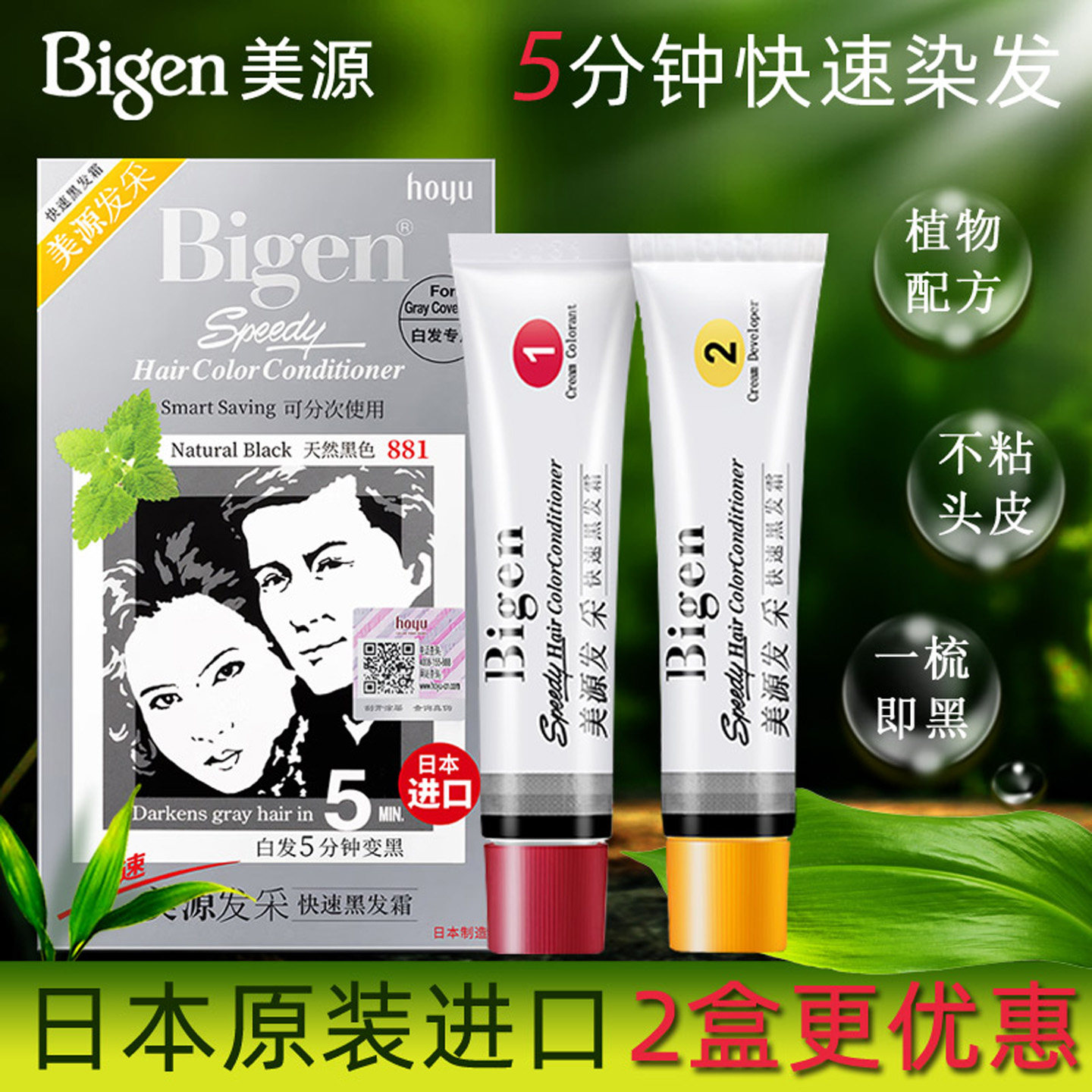 日本进口bigen美源发彩染发剂纯植物天然黑色盖白发一梳黑染发膏