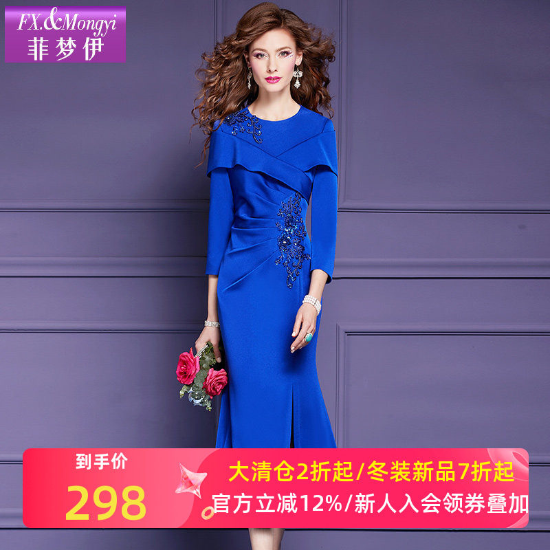 菲梦伊贴花红色连衣裙女秋季轻熟高级感气质女神范长裙礼服敬酒服