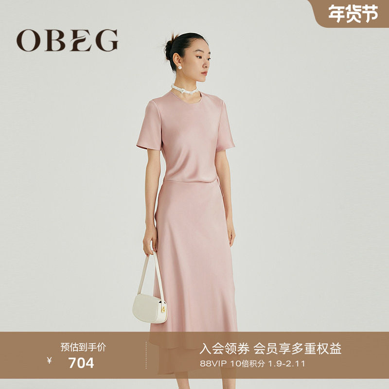 OBEG欧碧倩春围裹式连衣裙气质名媛高端女神范长裙10481078