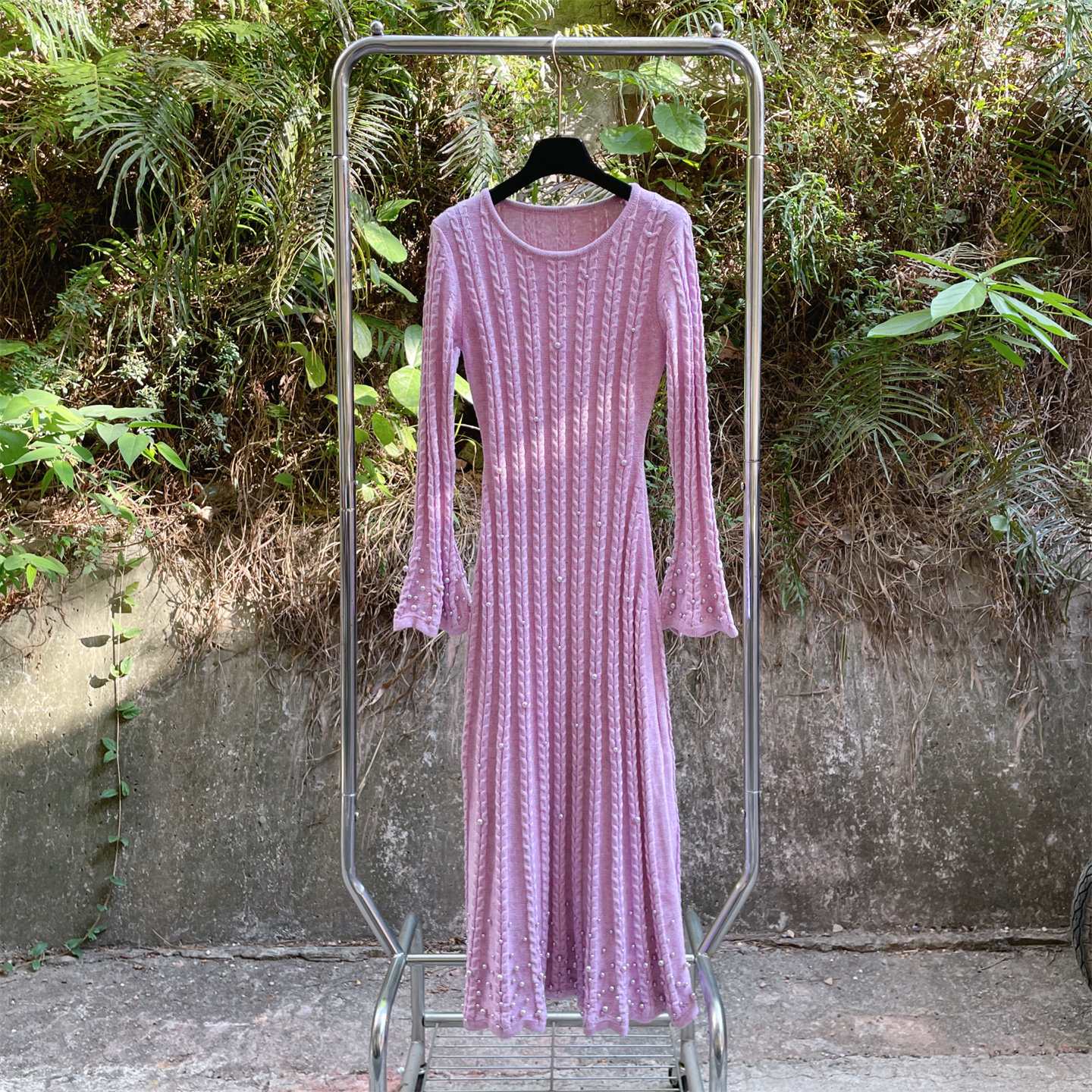 超好看法式气质名媛钉珠针织连衣裙女秋装新款气质女神范甜美长裙