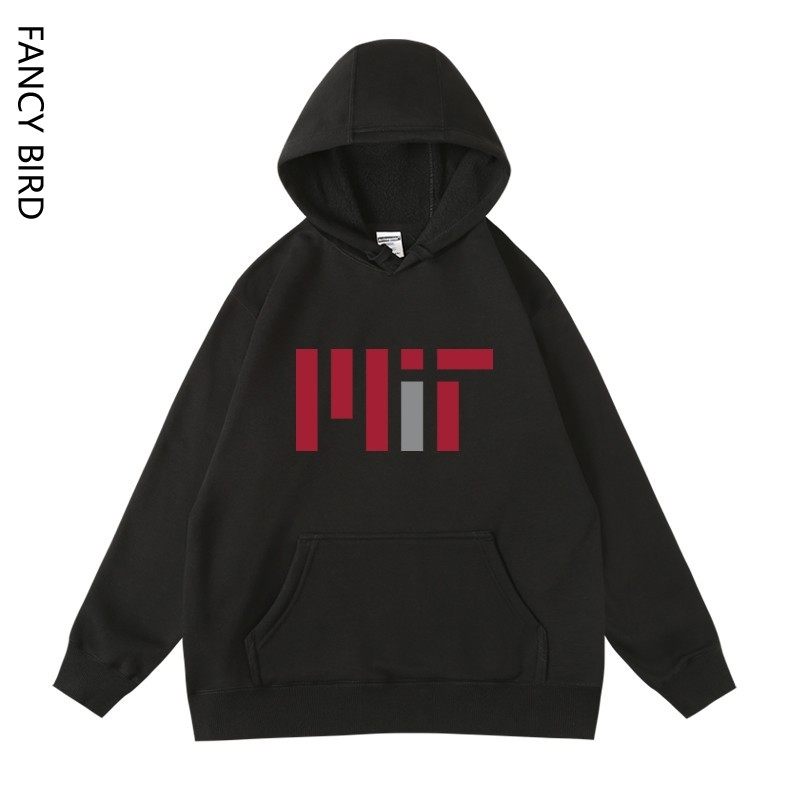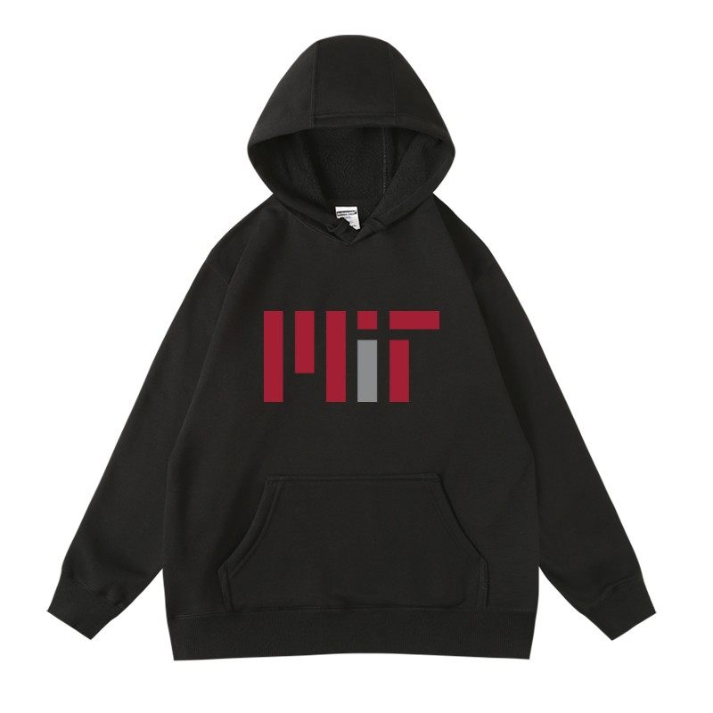 名校学院风文艺极客麻省理工印花秋冬加绒套头连帽卫衣帽衫男女款