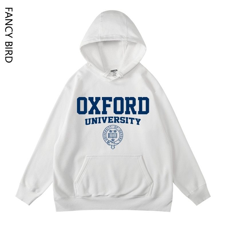 名校学院风文艺英国牛津大学印花秋冬加绒套头连帽卫衣帽衫男女款