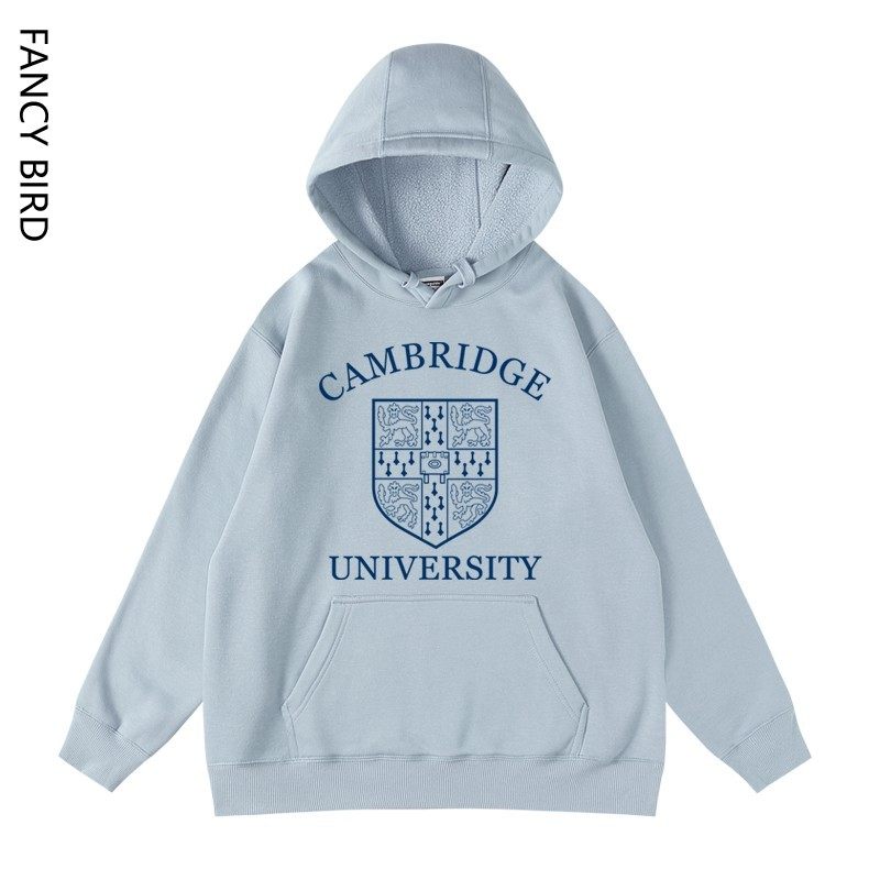 名校学院文艺风英国剑桥大学印花秋冬加绒套头连帽卫衣帽衫男女款