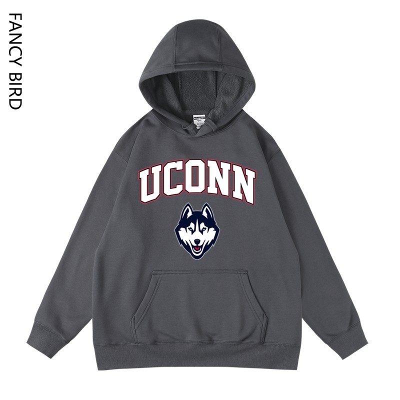 名校学院风篮球康涅狄格大学印花秋冬加绒套头连帽卫衣帽衫男女款