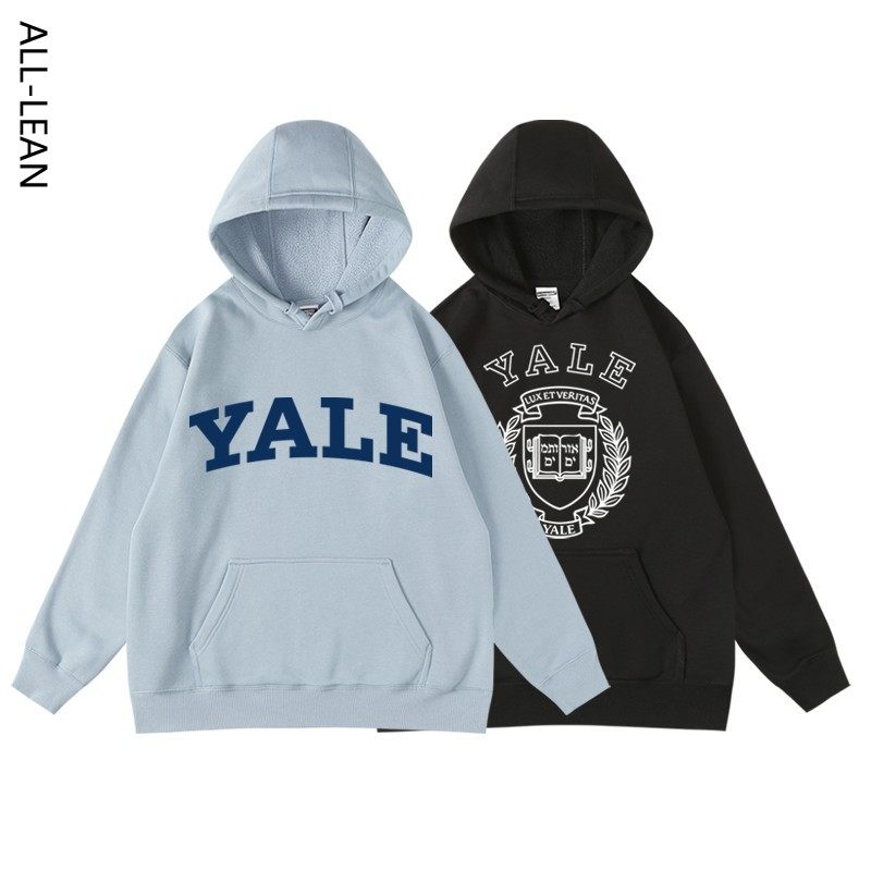 欧美学院风潮牌名校耶鲁大学街头印花秋冬加绒连帽套头卫衣男女款