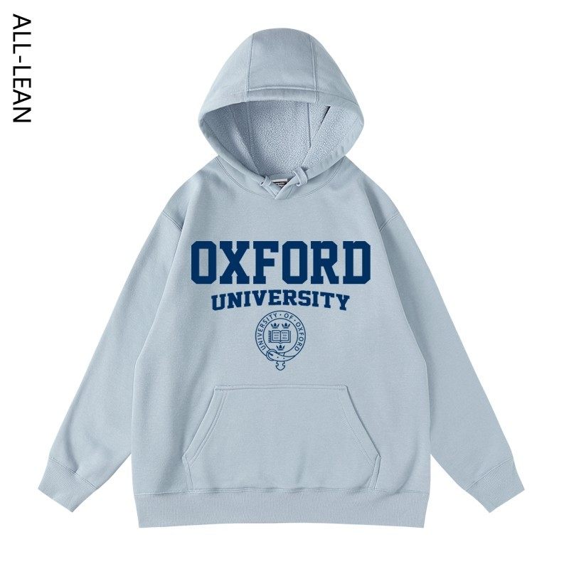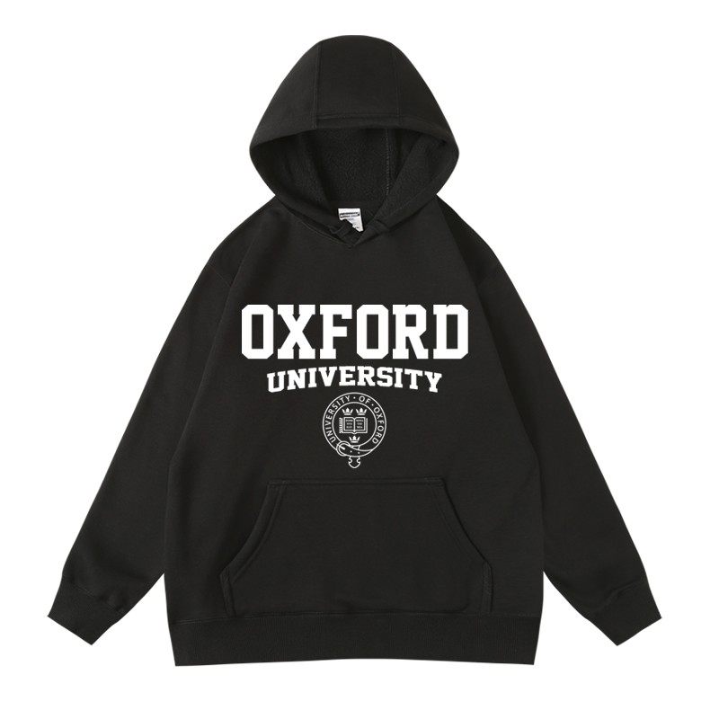 潮牌欧美学院风名校牛津大学街头印花秋冬加绒连帽套头卫衣男女款