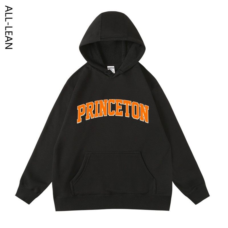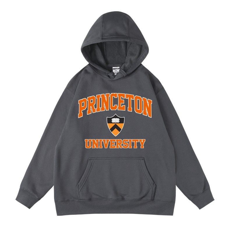 普林斯顿大学欧美学院风潮牌街头印花秋冬加绒连帽套头卫衣男女款