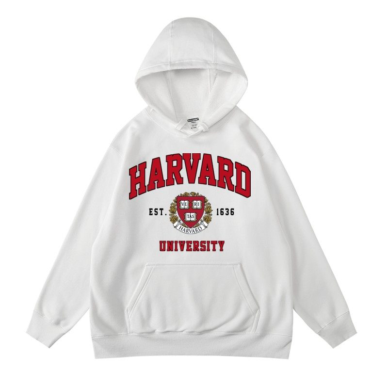 名校学院文艺风美国哈佛大学印花秋冬加绒套头连帽卫衣帽衫男女款