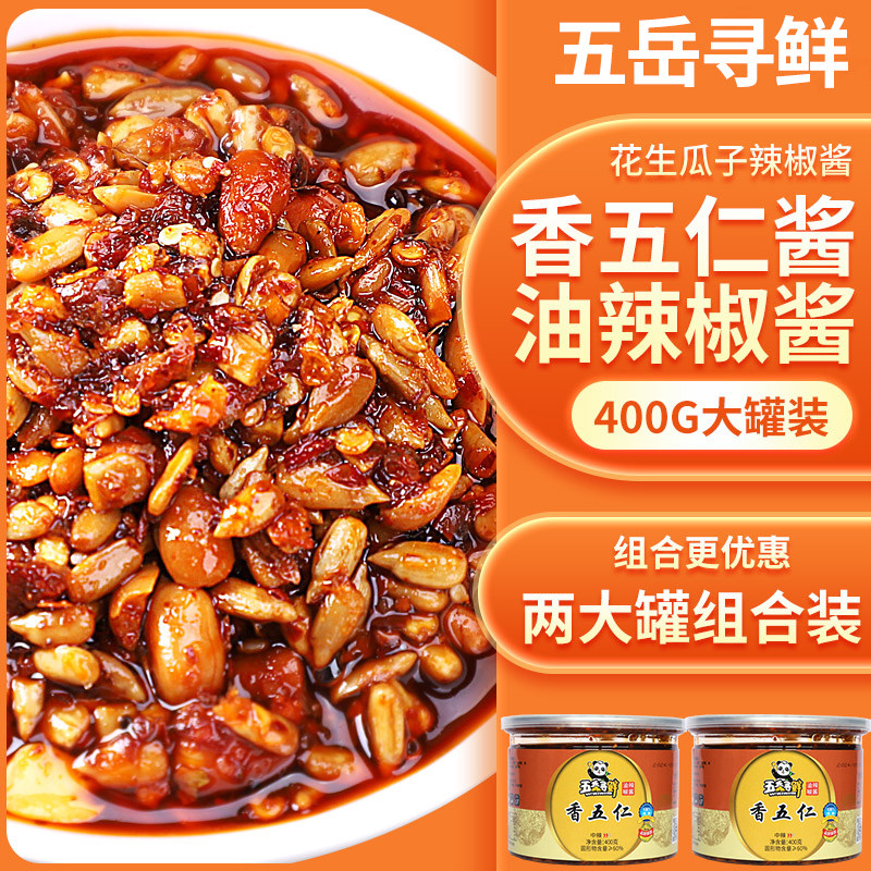 寻鲜香五仁油拌饭辣椒酱下饭菜400gx2罐花生瓜子凉拌菜香辣脆辣椒
