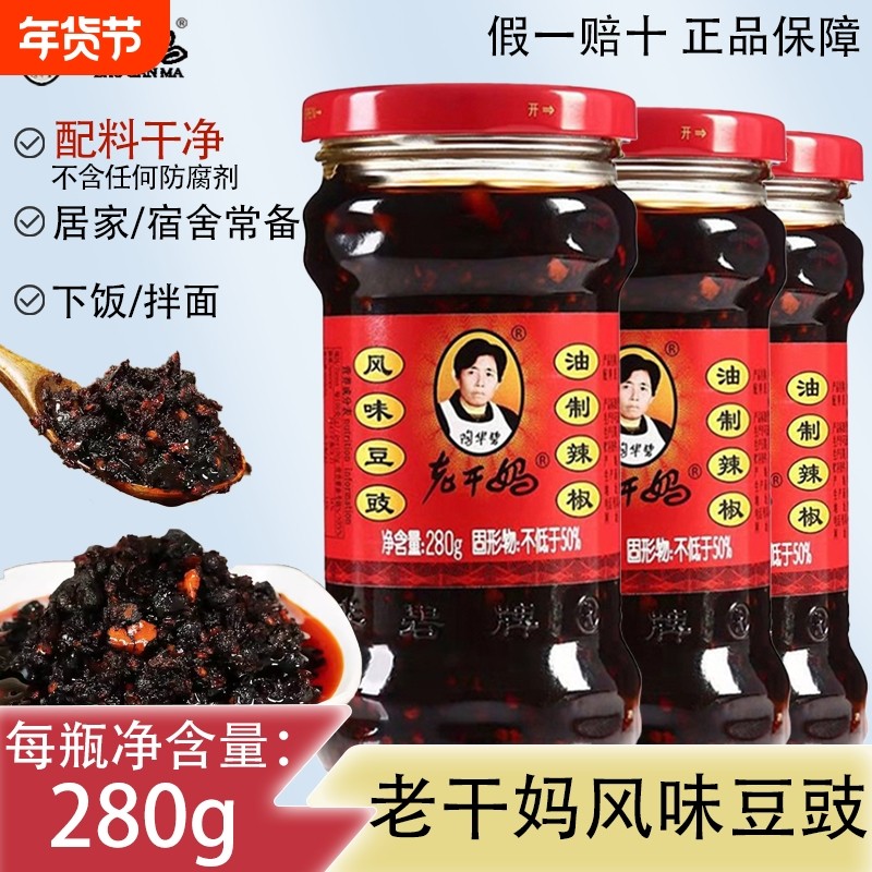 【官方旗舰店】老干妈干煸肉丝油辣椒风味鸡拌面酱豆豉拌饭辣椒酱