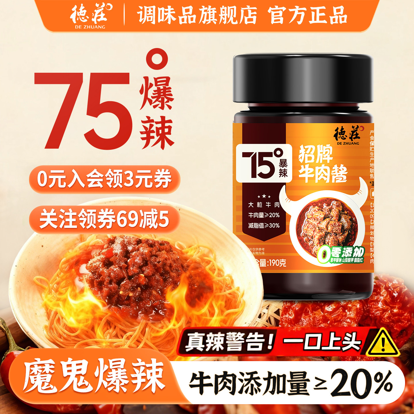 德庄75度牛肉酱爆辣特辣魔鬼巨超辣招牌拌面拌饭辣椒酱官方旗舰店