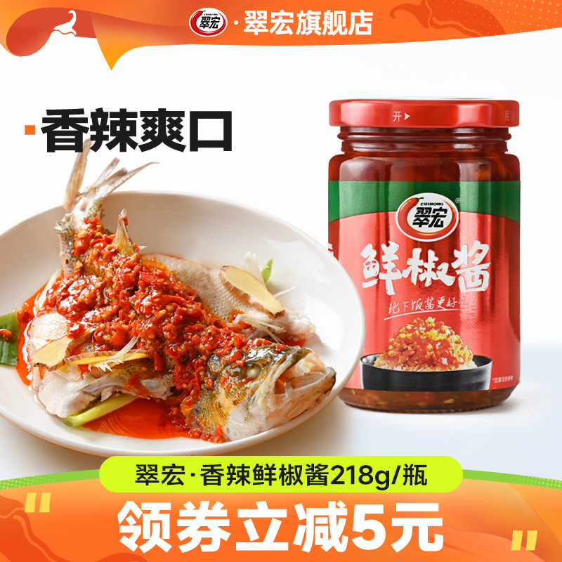 翠宏香辣鲜椒酱218g四川拌饭辣椒酱家用剁椒下饭菜干拌面皮调味酱