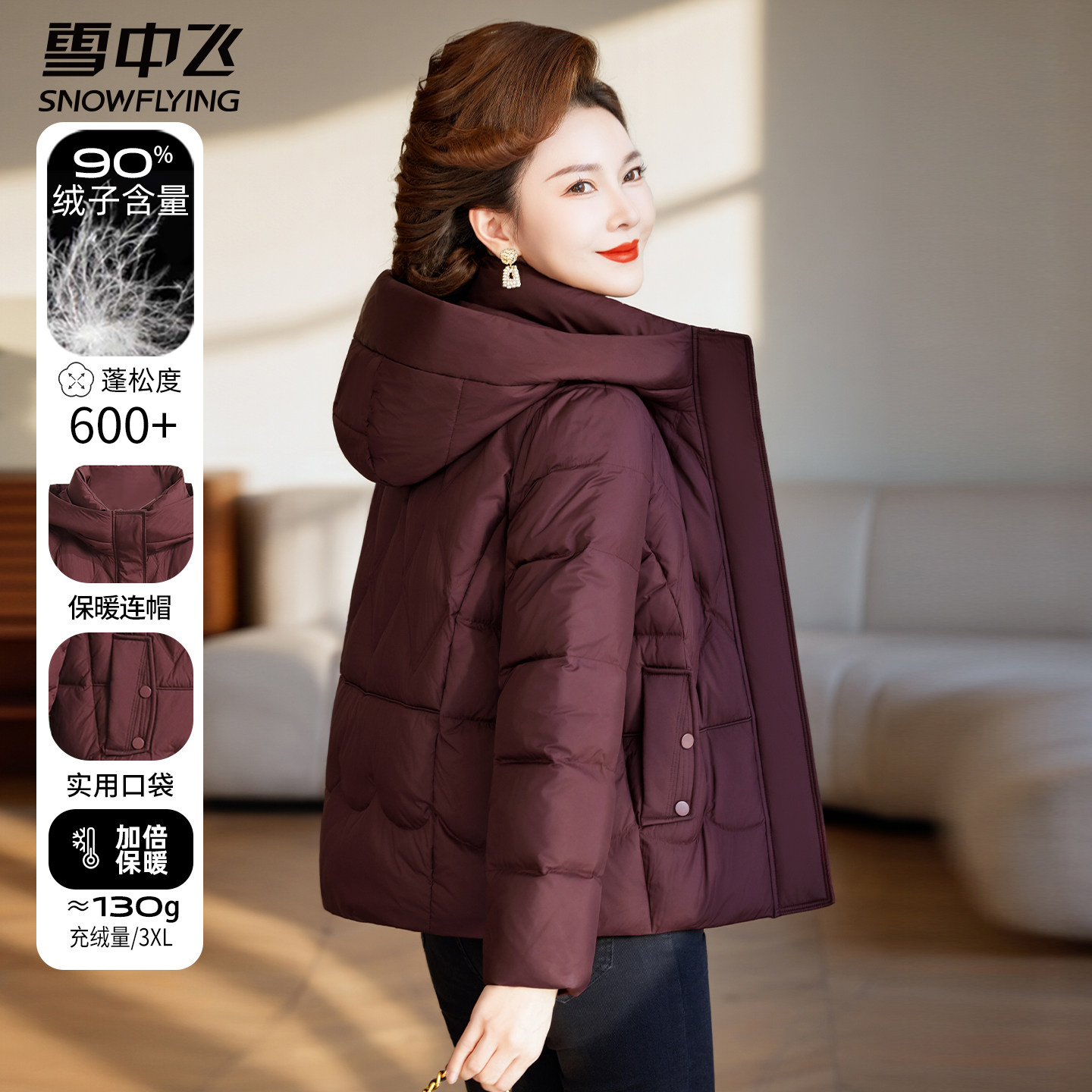 雪中飞中年妈妈羽绒服短款连帽冬装冬季2025新款中老年保暖厚外套