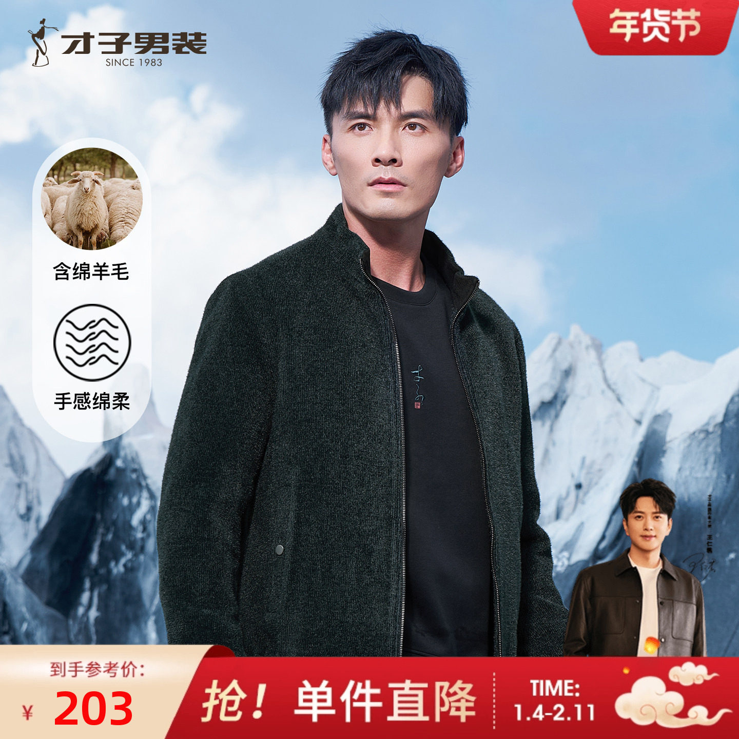 才子男装羊毛立领夹克男士2025秋季新款修身商务休闲中年短款外套