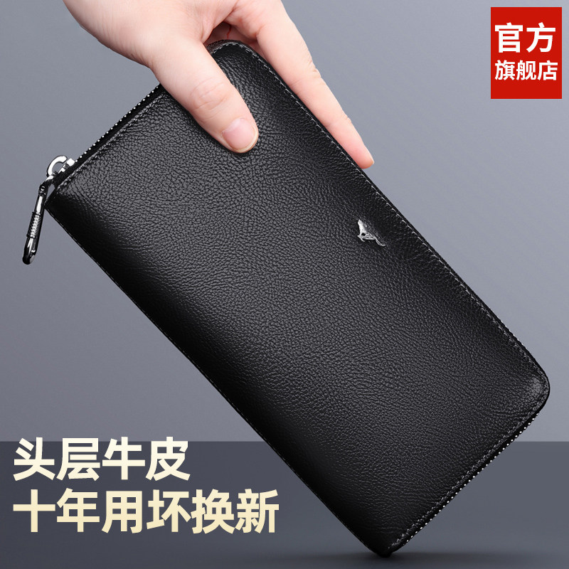 七匹狼男士手包真皮名牌双拉链大容量钱包头层牛皮男包手拿皮包潮