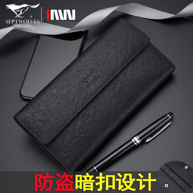 七匹狼男士长款钱包真皮西装钱夹韩版商务休闲头层牛皮手拿手抓包