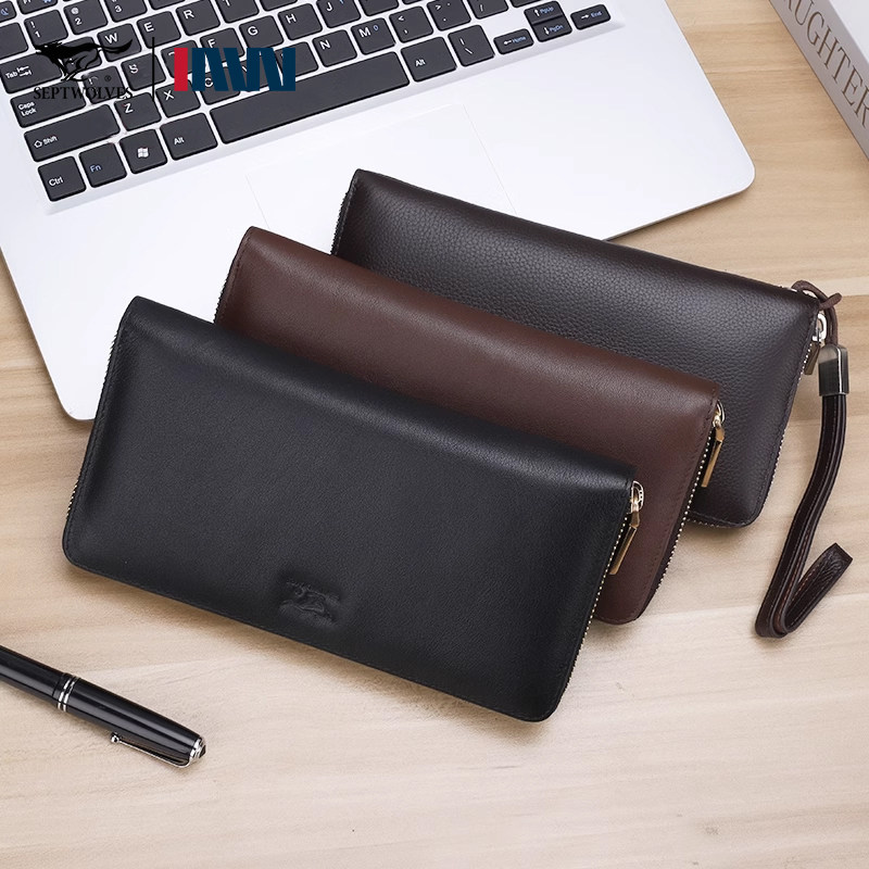 七匹狼男士钱包真皮长款拉链青年皮夹手抓手拿包牛皮钱夹商务手包