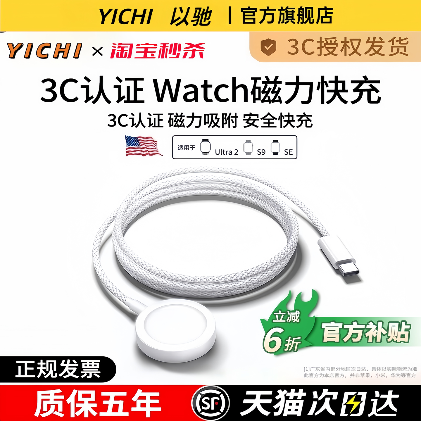 官方适用苹果手表充电器头applewatch充电线原装iwatch7/S6/se/8/S9/s10代ultra无线PD快充底座充电头编织线