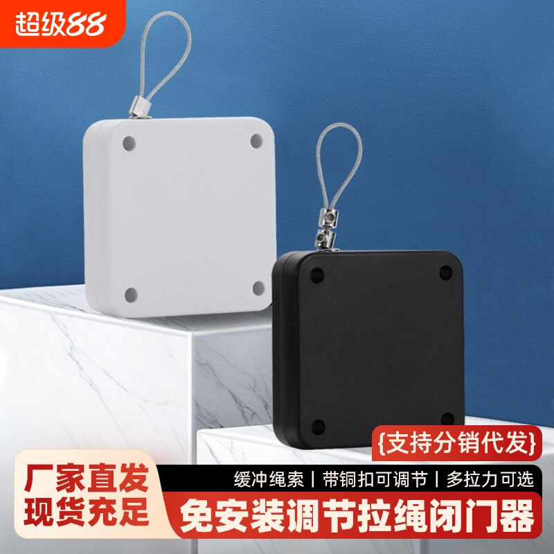 免打孔家用缓冲闭门器自动回弹关门神器拉绳闭合推位弹簧拉簧装置